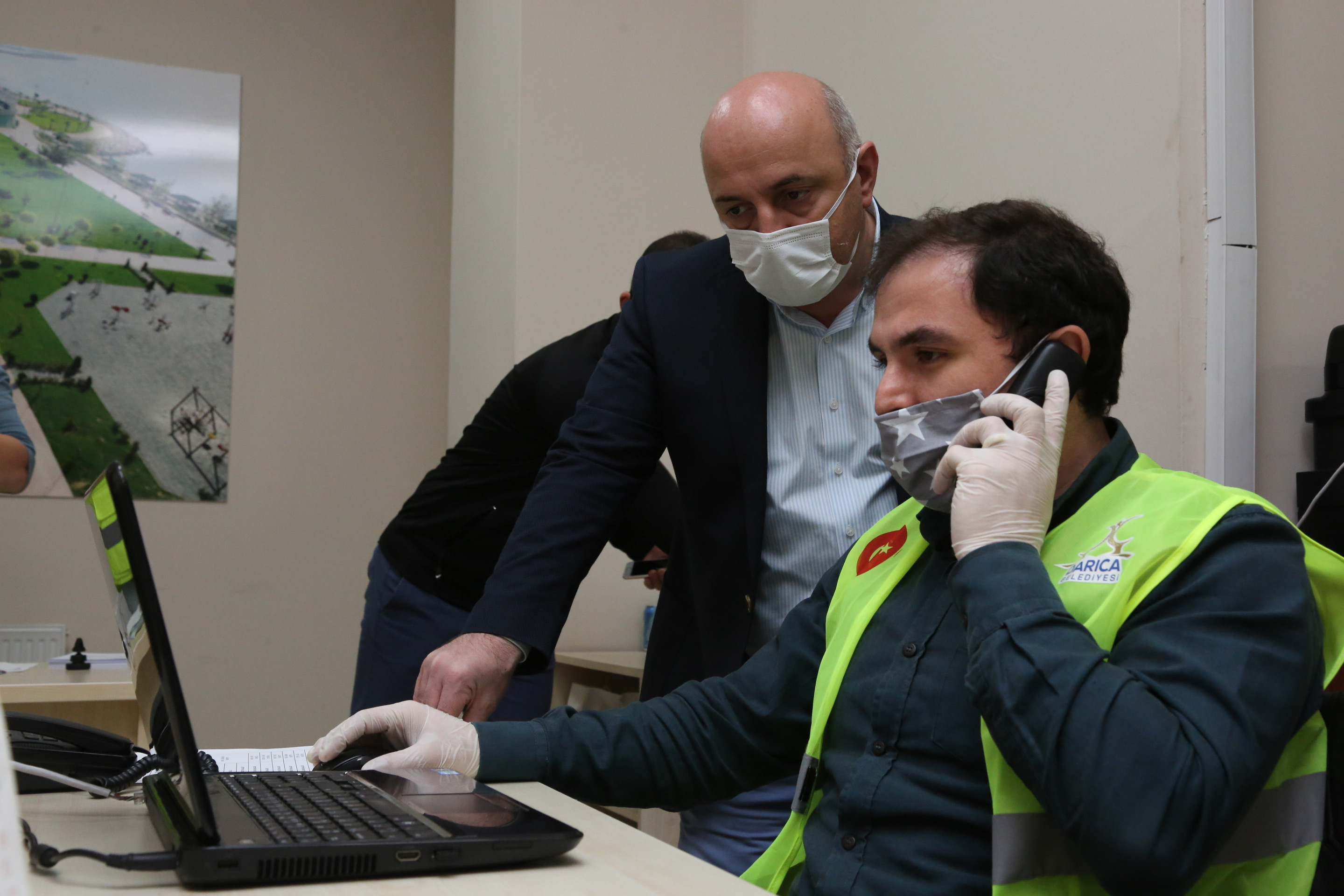 Darıca Belediye Başkanı Muzaffer Bıyık da Darıca Belediyesi merkez bina ve Adnan Menderes Kültür Merkezi’nde iki ayrı ekiple hizmet veren Vefa Sosyal Destek Merkezi’ni ziyaret ederek çalışmaları inceledi. Telefonun başına da geçen Başkanı Muzaffer Bıyık, gelen aramalara cevap vererek vatandaşların taleplerini dinledi. Vatandaşların isteklerini not alan Başkan Muzaffer Bıyık, ekipleri yönlendirerek taleplerin evlere ulaşmasını sağladı.