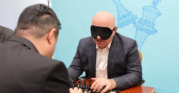 BIYIK, GÖZ BANDI TAKARAK SATRANÇ OYNADI
