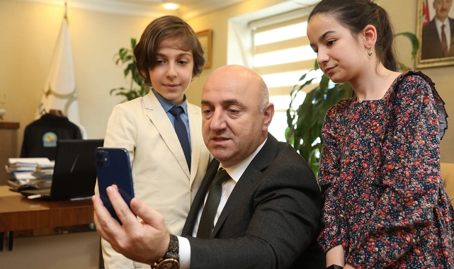 Minik Zülal ve Emre’yle sohbet eden Darıca Belediye Başkanı Muzaffer Bıyık ise koltuğunu çocuklara devretmekten dolayı mutlu olduğunu ifade ederek “Geleceğimizin teminatı olan tüm çocuklarımızın 23 Nisan Ulusal Egemenlik ve Çocuk Bayramı’nı kutluyor ve hepsini sevgiyle kucaklıyor, gözlerinden öpüyorum. Bugün iki yavrumuza koltuğumuzu bıraktığım için mutluyum. Darıca Belediyesi olarak çocuklarımızın daha iyi yetişmesi için canla başla çalışıyoruz. Yarının büyükleri olacak çocuklarımız inanıyorum ki ülkemizi daha güzel günlere taşıyacak. Bir kez daha başta Cumhuriyetimizin kurucusu Gazi Mustafa Kemal Atatürk ve silah arkadaşları olmak üzere ülkemizin bölünmez bütünlüğü ve bağımsızlığımız için canlarını feda etmiş tüm şehitlerimizi rahmet, minnet ve şükranla anıyorum” dedi. Başkan Muzaffer Bıyık, daha sonra çocuklara çeşitli hediyeler vererek eğitim hayatlarında başarılar diledi.