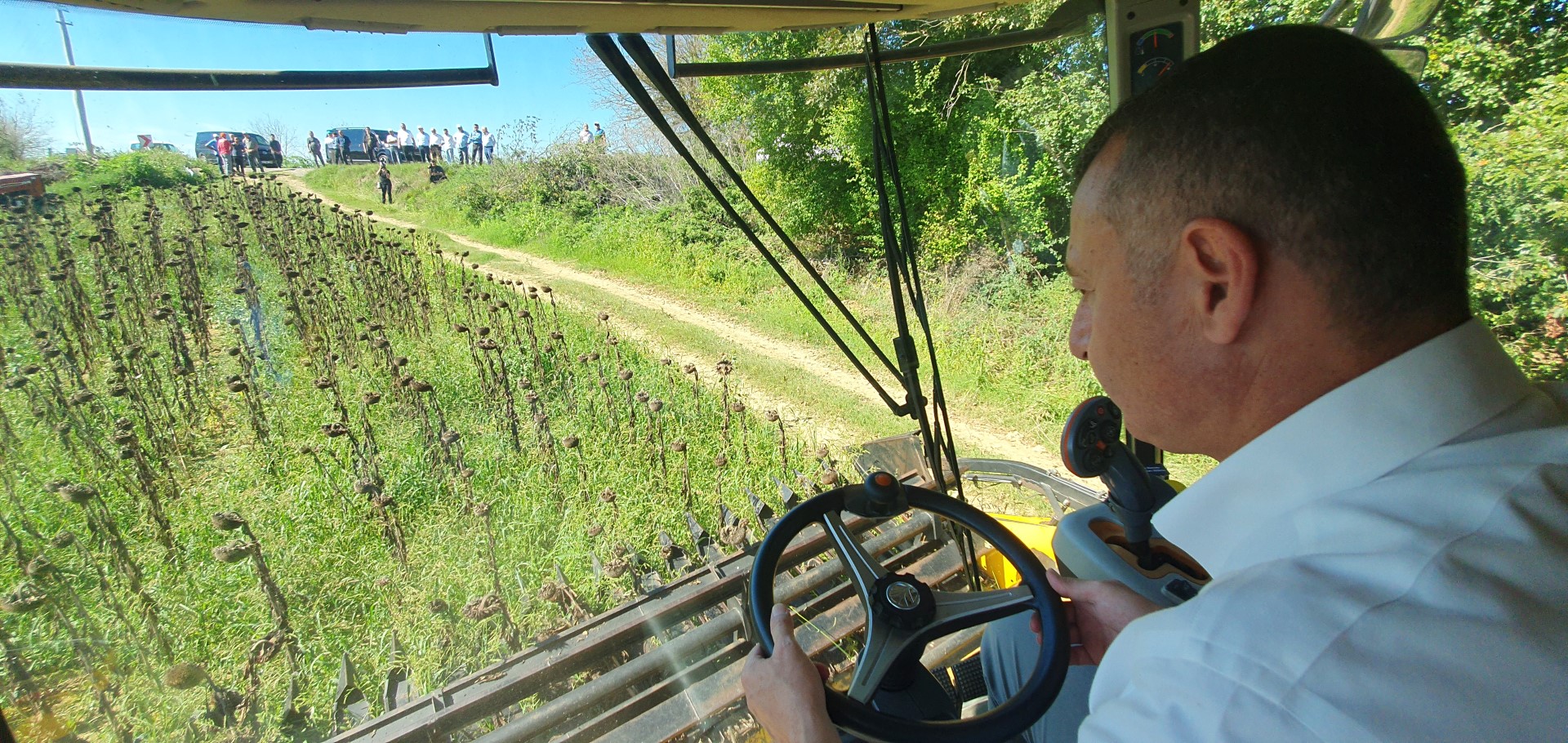 Başkan Büyükakın, Kandıra ilçesi Kaymaz Araman Mahallesi’nde gübre desteğinden yararlanan çiftçi Serkan Öztürk’ün sahibi olduğu 23 dönümlük tarlada biçerdöverin direksiyonuna geçerek, ayçiçeği hasadı yaptı. Başkan Büyükakın, daha sonra AK Parti Kandıra İlçe Başkanı Erol Ölmez, Kandıra Belediyesi Meclis Üyeleri Beyhan Şen ve Bayram Küçükyılmaz, Kaymaz Mahalle Muhtarı Mehmet Şenol, Selimköy Mahalle Muhtarı Emin Akçay, Hıdırlar Mahalle Muhtarı Nihat Sarı ve çiftçilerle sohbet etti.
