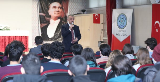 Başkan Büyükakın, hayatı başarılı ve başarısız kılan, insanı mutlu ve mutsuz eden şeyleri birbirinden ayırarak, öğrencilerin kendilerini gözlemlemeleri gerektiğine vurgu yaptığı konuşmasında şunlara yer verdi: “İç dünyanıza doğru da bir seyir yapın. Sizi mutlu eden şeylerin ne olduğunu birbirinden çok iyi ayırt etmeniz gerekiyor. Dolayısıyla dinlediğiniz insanlardan da onların başarı hikayesini dinlerken, onu birebir modellemeye sakın kalkmayın. Çünkü herkesin başarı hikayesi başkadır. Birileri kitabın altını çize çize okur. Bir tanesinin görsel hafızası iyidir. Kimisinin duygusal yönü iyidir. Kendinizi keşfetmeniz çok daha kıymetlidir. Sizi mutlu olan şey nedir onlara bakın.” Başkan Büyükakın, ayrıca gençlerle buluşmasının ardından Kocaeli Fen Lisesi öğretmenleriyle de bir araya gelerek sohbet etti.