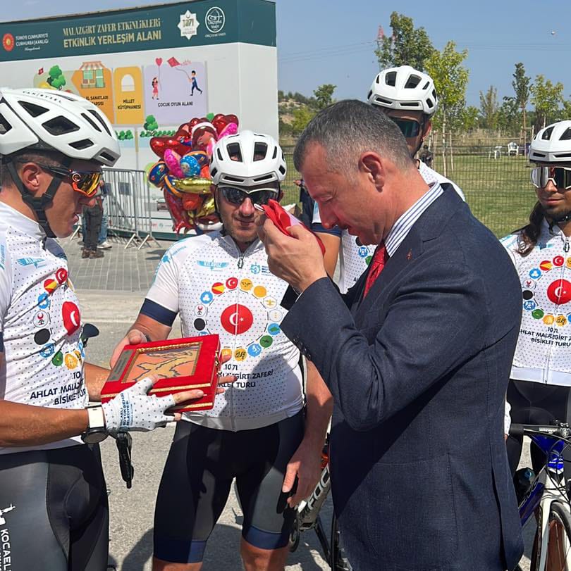 “Malazgirt Zaferi'nin 951. yıl dönümünde Sultan Alparslan başta olmak üzere Anadolu'yu vatan hâline getiren tüm kahramanları, şehitleri, gazileri, maddi ve manevi önderleri rahmetle yâd ediyorum” vurgusu da yapan Başkan Büyükakın, Malazgirt Zaferi’nin 951. yılı kutlama törenleri kapsamında Bitlis’in Ahlat ilçesinde düzenlenen etkinliğe de katıldı. Burada da Malazgirt Zaferi’nin 951. Yıl dönümünde, 16 Türk devleti için Kocaeli’den Ahlat’a 1600 km pedal çeviren Kocaelili bisikletçilerden sancağı teslim aldı. Buraya kadar pedal çeviren tüm bisikletçilere teşekkür eden Başkan Büyükakın, “Bu anlamlı gayretiniz için sizlere şükran borçluyuz. Bizleri gururlandırdınız” şeklinde konuştu.
