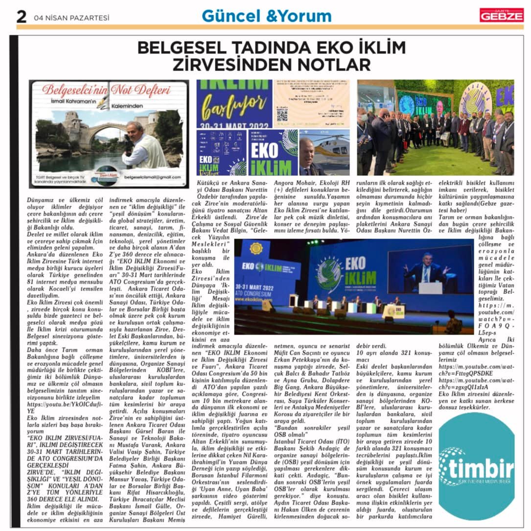 Ankara’da düzenlenen Eko İklim Zirvesine Türk internet medya birliği kurucu üyeleri olarak Türkiye genelinden 81 internet medya mensubu olarak Kocaeli’yi temsilen davetliydim.