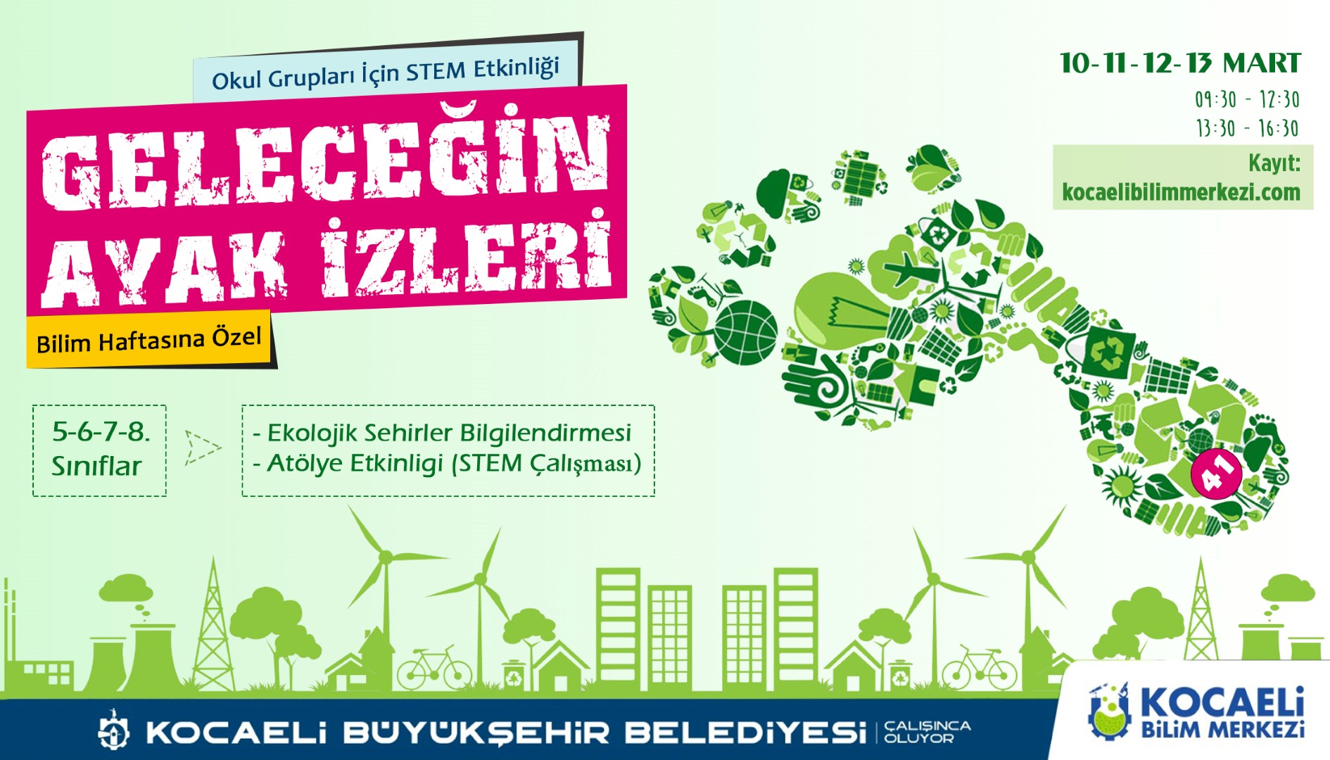 Ortaokul grupları için gerçekleştirilecek olan “Geleceğin Ayak İzleri STEM Etkinliği” dört gün boyunca sürecek. 41 okuldan yüzlerce öğrencinin katılımıyla gerçekleştirilecek etkinlikte, her bir grup kendisine verilen boş alanı, yönergeler doğrultusunda doldurarak Ekolojik Ayak İzini tamamlamaya çalışacak. 5, 6, 7 ve 8. sınıf öğrencilerinin katılım sağlayacağı etkinliğin kayıt işlemleri, öğretmenler tarafından www.kocaelibilimmerkezi.com adresinden alınmaya devam ediyor.