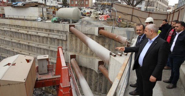 Gebze Belediye Başkanı Zinnur Büyükgöz ve KBB Başkan Vekili Yaşar Çakmak, çalışmaların hızla sürdüğü Gebze-Darıca metrosunda incelemelerde bulundu.