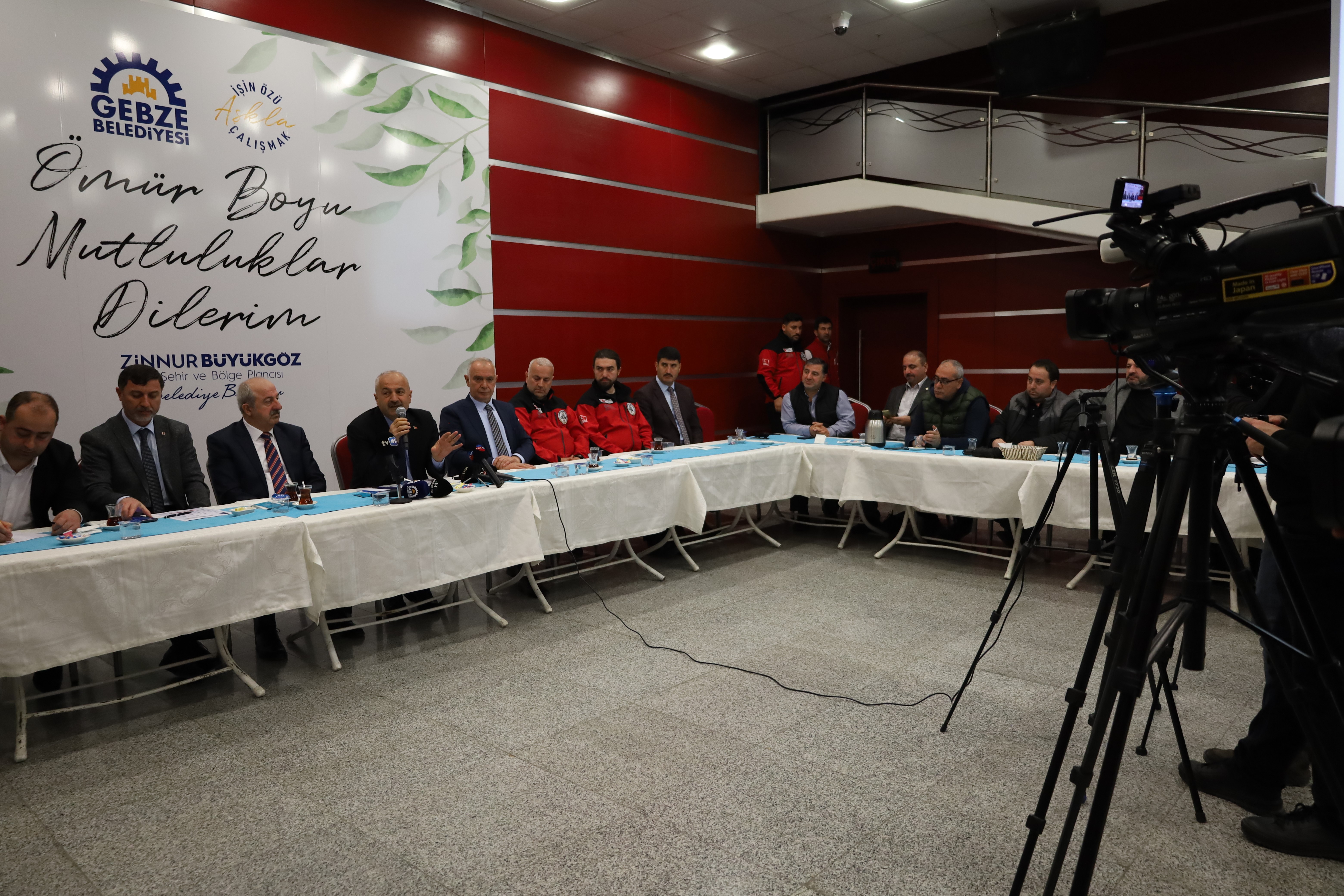 Depremin ilk saatlerinde Gebze Belediyesi Arama ve Kurtarma Ekibinin (GEAK) bir bölümünü Kahramanmaraş’a, bir bölümünü Adıyaman’a yola çıkardıklarını aktaran Gebze Belediye Başkanı Zinnur Büyükgöz, “Ekibimiz dağlardan, patika yollardan deneye deneye 17 saatlik bir mücadeleden sonra Kahramanmaraş’a varabildiler. Çünkü yollar patlamıştı, tünel ağızları kapanmıştı, hayata müdahale anlamında son derece zorlanan bir yolculuktu. 290 belediye personeli ve 92 araçla biz de buradan yola çıktık. 290 personelin içerisinde aynı zamanda küçük bir belediye örneğini yola çıkarmış olduk. 6 tane imam, 2 tane bay gassal, 1 tane bayan gassal, 2 cenaze aracı, kefen bezi, ceset torbası, buna dönük her türlü malzeme, 1 ambulans, 1 tam teşekküllü hayvan ambulansı ve müdahale aracı, iş makineleri, gıda dağıtımında kullanılacak servis araçları, bütün imkanlarımızla oraya gittik. Orada hastalara acil müdahale gerektiği için de biz hemen karargahımızın bir köşesinde de yeryüzü doktorlarıyla irtibata geçip, onları davet ettik. 2 ekipten oluşan 33 sağlık personelini oraya ulaştırmış olduk. Orada kime sorarsanız sorun Hatay’da Kocaeli Büyükşehir Belediyesi var, Konya Büyükşehir Belediyesi var, Gebze Belediyesi var. Allah’a hamdolsun Gebze’nin yüzünü ak edecek her türlü davranışı orada personelimiz ortaya koydu” dedi.