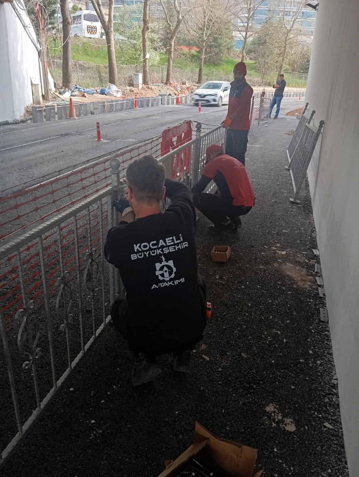 Kocaeli Büyükşehir Belediyesi, yaya trafiğinde konfor ve güvenliği artıracak pek çok çalışma gerçekleştiriyor. Bu bağlamda Yol Yapım ve Bakım Dairesi Başkanlığı’na bağlı A Takımı ve Yol Bakım Timleri, Alikahya Stadyum Tramvay Hattı güzergâhında yer alan Sultan Murat Caddesi ile Yuvam Akarca Menfezinde yaya güvenliğini sağlamak amacıyla demir korkuluk ve ferforje montajı yaptı. Yoğun yaya trafiğinin bulunduğu bölgelerde gerçekleştirilen çalışmalar, olası kazaların önlenmesi ve güvenli geçiş noktalarının oluşturulması açısından büyük önem taşıyor.