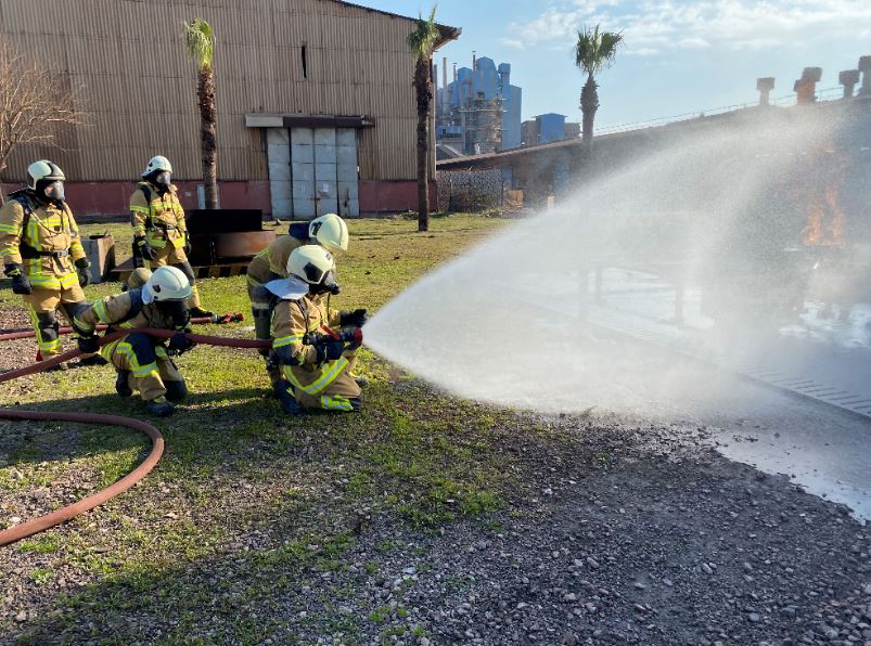 Gelen eğitim talepleri doğrultusunda hem Kocaeli hem de il dışındaki kurum ve kuruluşlara eğitim hizmeti veren Büyükşehir İtfaiyesi, Hatay’da faaliyet gösteren İSDEMİR (İskenderun Demir ve Çelik A.Ş.) firmasından gelen eğitim talebini de karşılıksız bırakmadı. Firma bünyesindeki itfaiye teşkilatına yeni alınan personele fabrika alanında eğitim verildi.