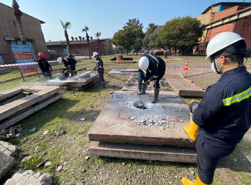 Firmanın itfaiye hizmetlerine yönelik olarak yeni personel almasının ardından tekrar yaptıkları başvuruya istinaden firmanın yeni itfaiyecilerine de eğitim hizmeti sunuldu. KOBİTEM eğitmenleri tarafından İSDEMİR firmasının kendisine ait itfaiye eğitim alanı da bulunan Hatay’daki tesislerinde gerçekleştirilen eğitimlerde yangına müdahale, yüksek açı kurtarma, trafik kazalarında kurtarma ve çökmüş yapılarda arama kurtarma ana başlıklarında teorik ve pratik bilgiler aktarıldı.