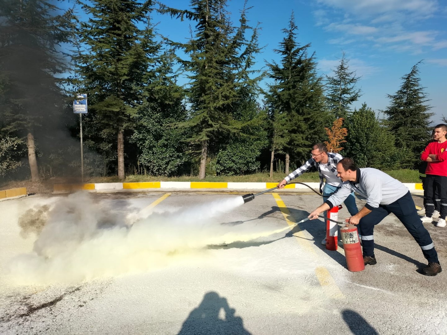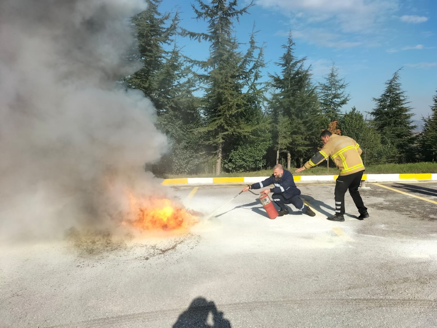 Teorik ve pratik olmak üzere iki bölümden oluşan eğitimlerde, yanma ve yangın, yangın yerindeki riskler, söndürme maddeleri ve söndürme teknikleri, taşınabilir yangın söndürücüler, yangına müdahale ekipmanı, su ve köpük uygulama metotları başta olmak üzere birçok konuda bilgiler sunuldu.