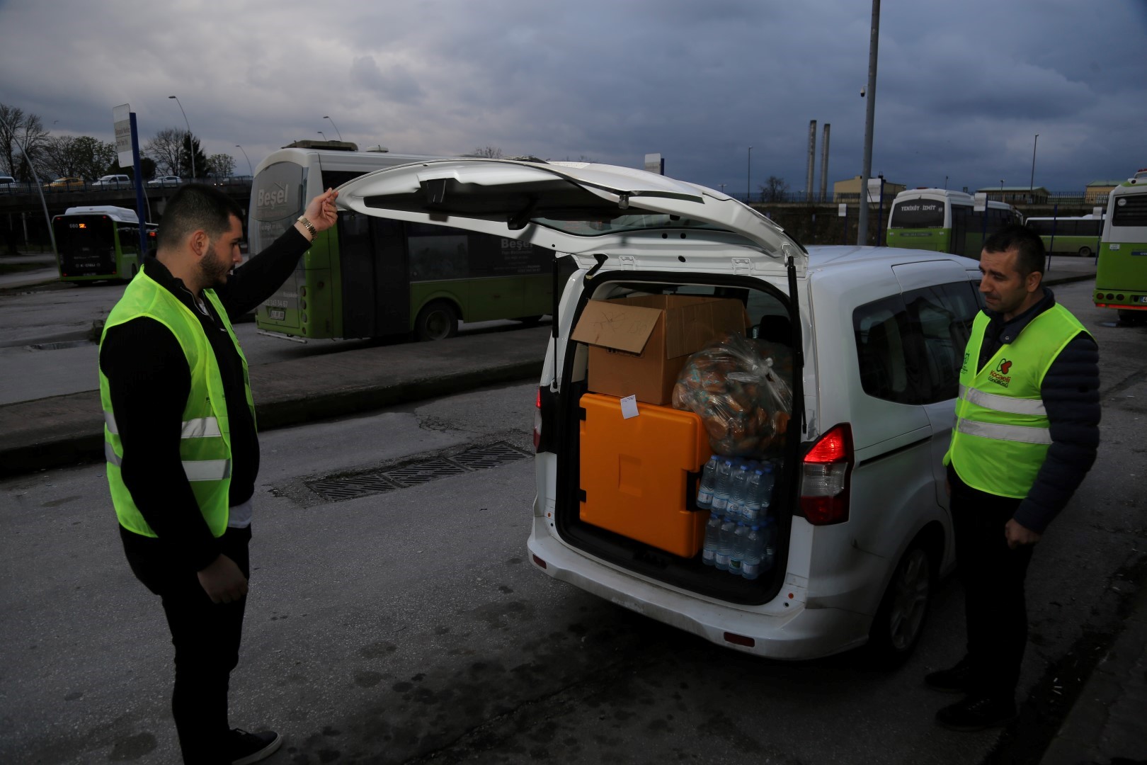 Kocaeli Büyükşehir Belediyesi, Ramazan ayında iftar saatinde çalışmak zorunda kalan esnafa yönelik iftarlık dağıtımlarına devam ediyor. Bu kapsamda İzmit’te görevli minibüs sürücülerine iftarlık dağıtıldı. Kocaeli Büyükşehir Belediyesi Dış İlişkiler Dairesi Başkanlığı Esnaf ve Sanatkar İşleri Şube Müdürlüğü, Ramazan ayında çalışan esnaflara yemek desteği veriyor. Bu kapsamda iftar saatinde çalışmak zorunda kalan minibüs sürücüleri için sıcak yemek hazırlandı. Büyükşehir ekipleri iftar saatine yakın İzmit Batı Terminali, Güney Terminali ve Kırsal Terminali gezdi. Terminalde bulunan minibüs sürücülerine ve terminalde görevli personele iftarlık sıcak yemek dağıtıldı. Sıcak yemek dağıtımdan memnun kalan minibüsçüler, Kocaeli Büyükşehir Belediye Başkanı Tahir Büyükakın’a teşekkür etti.