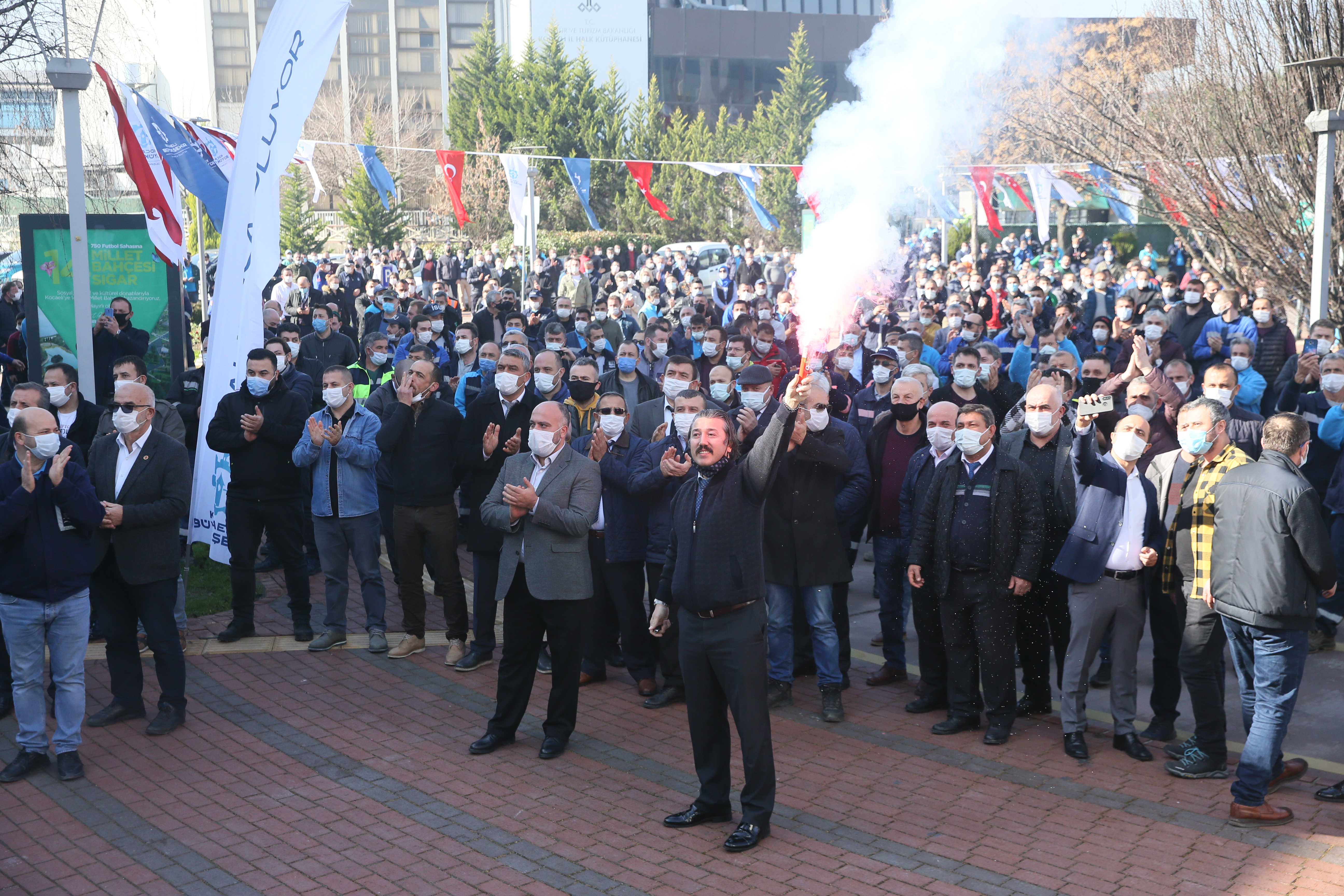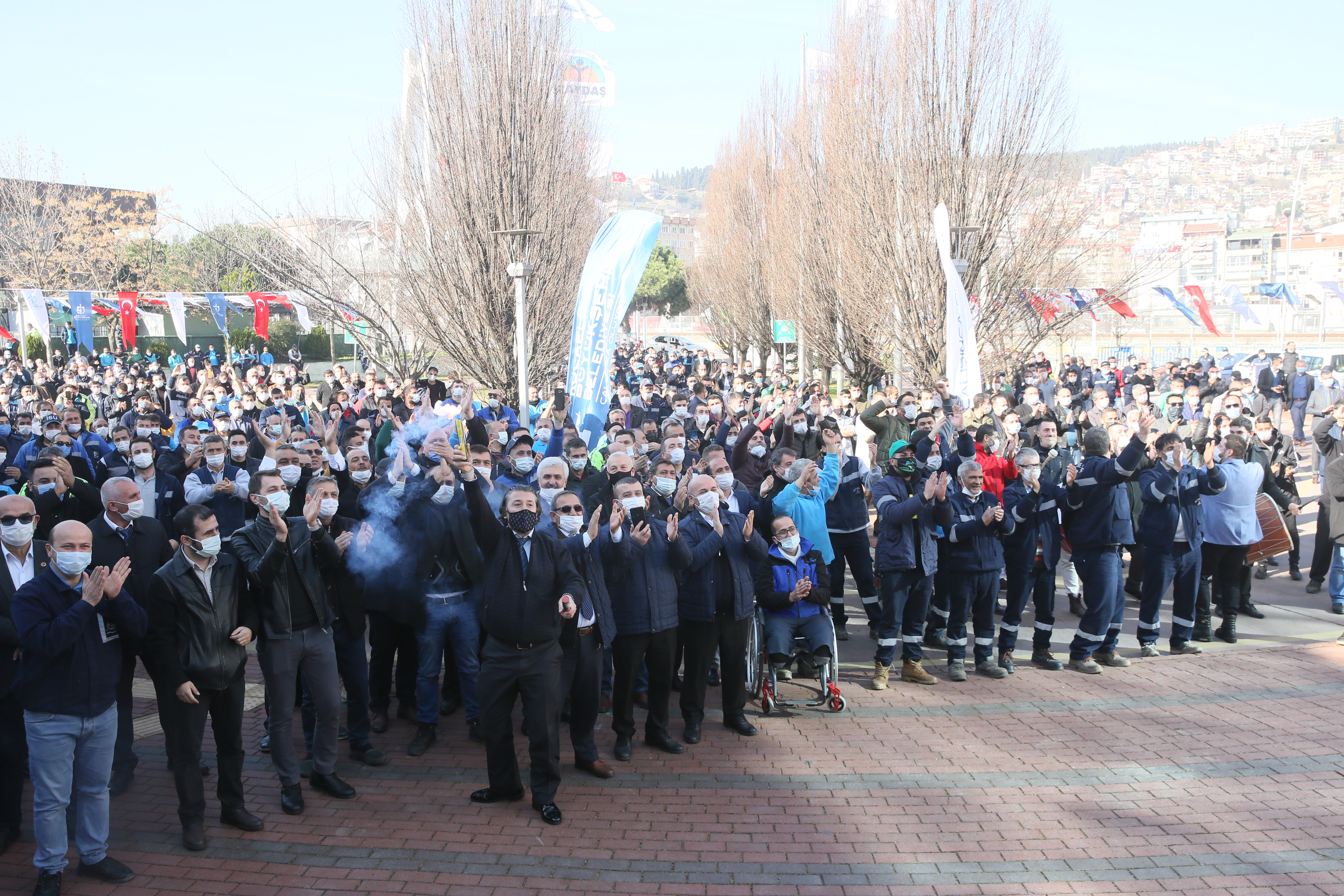 Büyükşehir Belediyesi Ana Hizmet Binası önünde gerçekleştirilen törende konuşan Belediye Başkanı Tahir Büyükakın, Belde AŞ personelinin salgın döneminde yaptıkları özverili çalışmalarla şehre ve Belediyeye olan bağlılığını bir kez daha kanıtladığını söyledi.