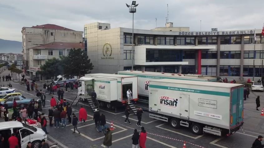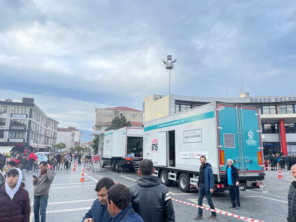 Sabah erken saatlerde yola çıkan Mobil Yemek Tırı ve Mobil Ekmek Tırı Düzce Merkeze ulaştı. Sabah saatlerinde kurulan tırlar depremzedeler için çorba ve ekmek yapımına başladı. Düzce Belediye Başkanlığı önünde konuşlanan Mobil Yardım Tırlarını İçişleri Bakanı Süleyman Soylu ziyaret etti. Bakan Soylu, yardımlarından dolayı Kocaeli Büyükşehir Belediyesi’ne teşekkür etti.