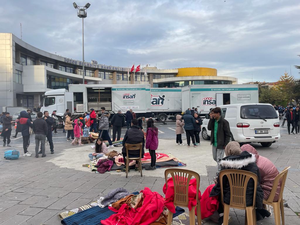Dün gece 04.10’da meydana gelen Düzce Merkezli deprem çevre illerdede hissedildi. Depremin ardından Kocaeli Büyükşehir Belediyesi hemen harekete geçti. Bölgede yaşanan artçı depremler nedeniyle evlerine giremeyen depremzedelere yardım için Büyükşehir Belediyesi, mobil yardım TIR’larını Düzce’ye gönderdi.