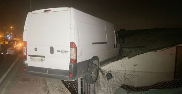 Çayırova'da sürücüsünün direksiyon hakimiyetini kaybettiği minibüs, bir firmanın deposunun çatısına çarptı.