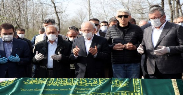 Cenaze törenine katılanlara, yeni tip koronavirüs (Kovid-19) önlemleri kapsamında dezenfektan, eldiven ve maske dağıltılırken, Kemal Kılıçdaroğlu'nun da törene maskeyle geldiği görüldü.