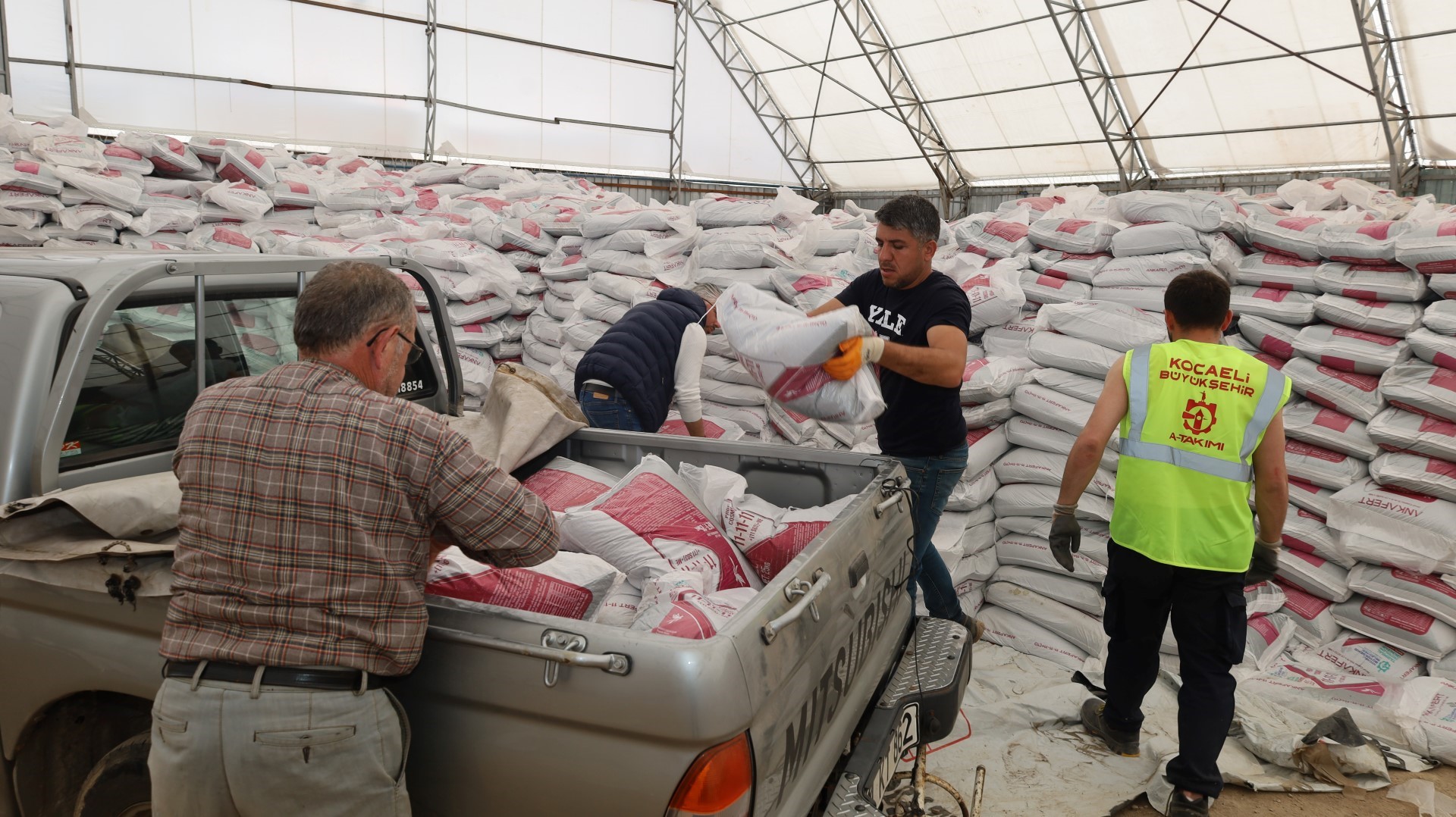 Kandıra ilçesinde gübrelerin üreticilere dağıtımı tamamlanırken, Büyükşehir Belediyesi eski itfaiye binası arkasındaki A Takımı hizmet binasının deposunda ise dağıtımlar devam ediyor. Desteğe ilgi gösteren çiftçiler, yüzde 50 hibeli ödeme dekontlarını ibraz ettirerek, araçlarıyla gübrelerini teslim alabiliyor.