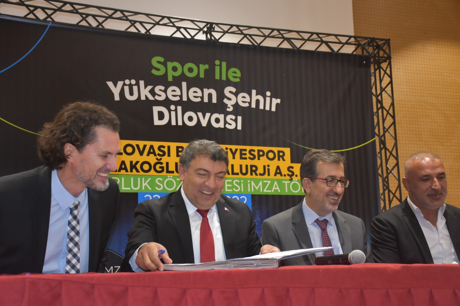 Ardından imza törenine geçildi. İmza töreninde Dilovası Belediye Başkanı Hamza Şayir, Çolakoğlu Metalurji İnsan Kaynakları ve Kurumsal İletişim Direktörü Kazım Selim Özkan, Dilovası Belediyepsor Kulüp Başkanı Recep Laç ve Çolakoğlu Metalurji İletişim Koordinatörü Enis Şener ana sponsorluk için hazırlanan protokolü imzaladılar.