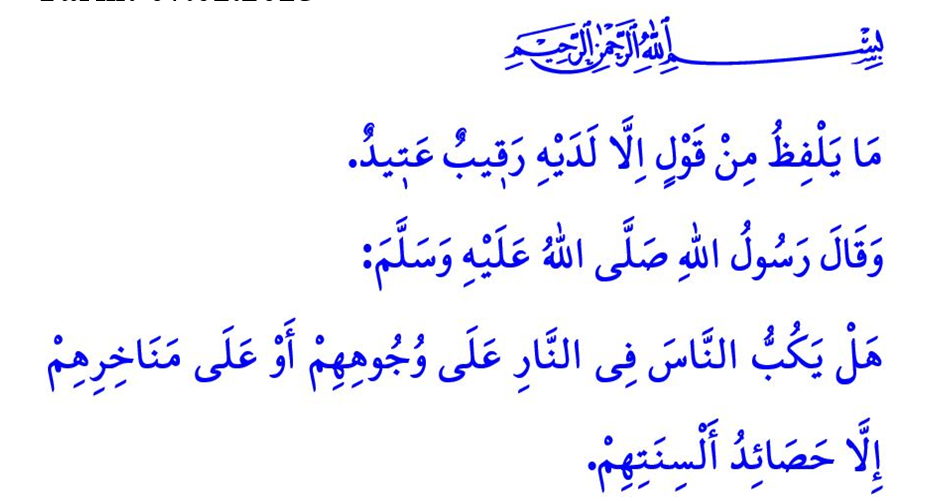 Bir gün Peygamber Efendimiz (s.a.s), sahabe-i kiramdan Muâz b. Cebel’e, “Sana dinini kemale erdiren ve onu tamamlayan şeyin ne olduğunu söyleyeyim mi?” buyurdu. Sonra da mübarek dilini eliyle tutup, “İşte şuna sahip çık.” dedi. Bunun üzerine Muâz, “Yâ Resûlallah! Biz söylediğimiz sözler sebebiyle de hesaba çekilecek miyiz?” diye sorunca Allah Resûlü (s.a.s), hepimizi yakından ilgilendiren şu cevabı verdi: “İnsanları cehenneme sürükleyen, dilleriyle kazandıkları değil midir?”[1]