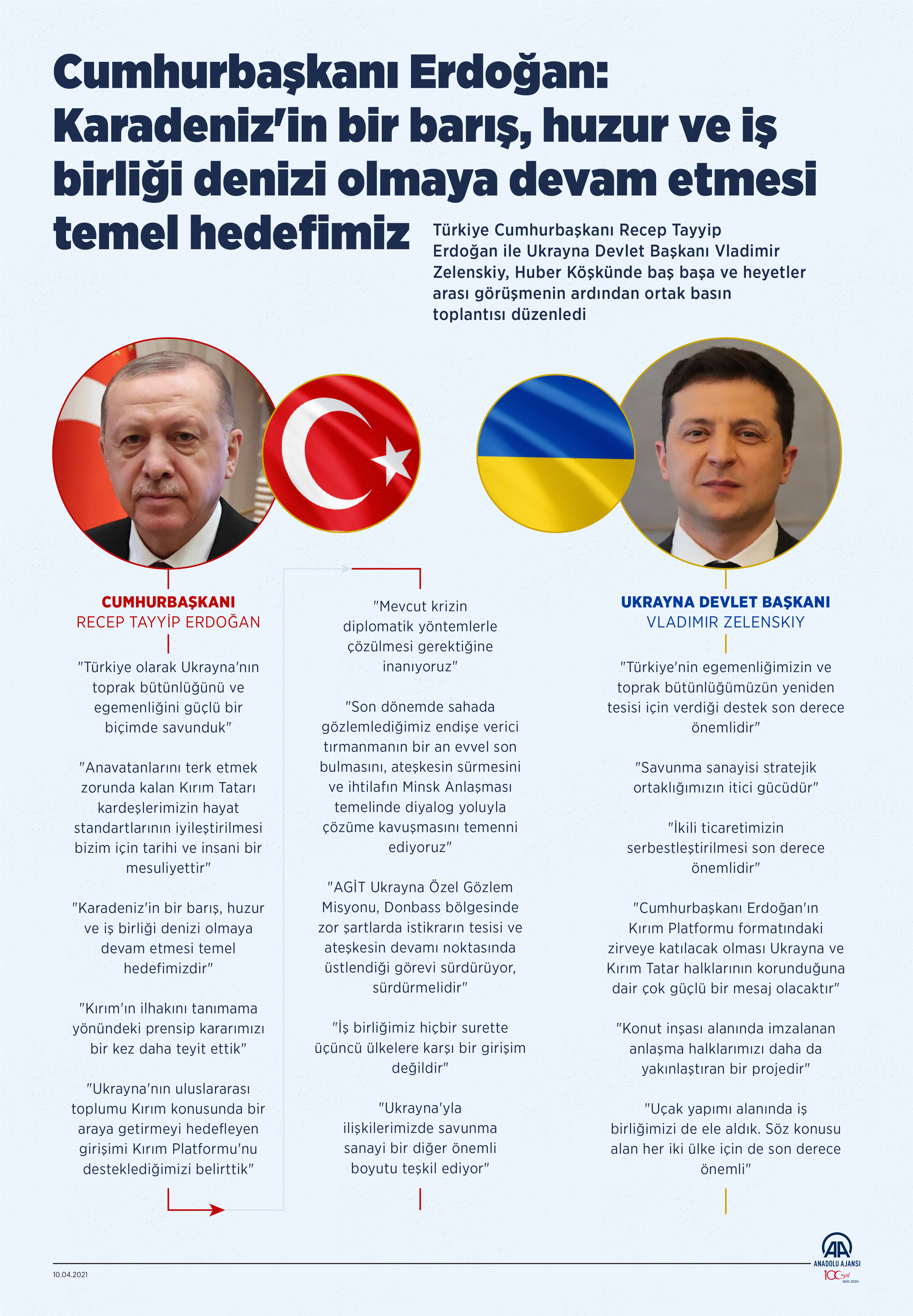 Türkiye Cumhurbaşkanı Recep Tayyip Erdoğan ile Ukrayna Devlet Başkanı Vladimir Zelenskiy, Huber Köşkünde baş başa ve heyetler arası görüşmenin ardından ortak basın toplantısı düzenledi.