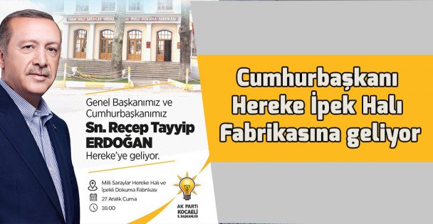 Kuruluşu 1840’lara kadar inen ve Osmanlıdan Cumhuriyete devreden Türkiye’nin ilk fabrikaları arasında yer alan Hereke İpek Halı fabrikasında inceleme yapması İpek Halıya verdiği önem ve değer olarak bilinmekte. Edindiğimiz bilgiye göre Cumhurbaşkanı Erdoğan saat 16:00 Hereke Halı Fabrikasında halı dokuma bölümlerini gezecek ve yetkililerden bilgi alacak.