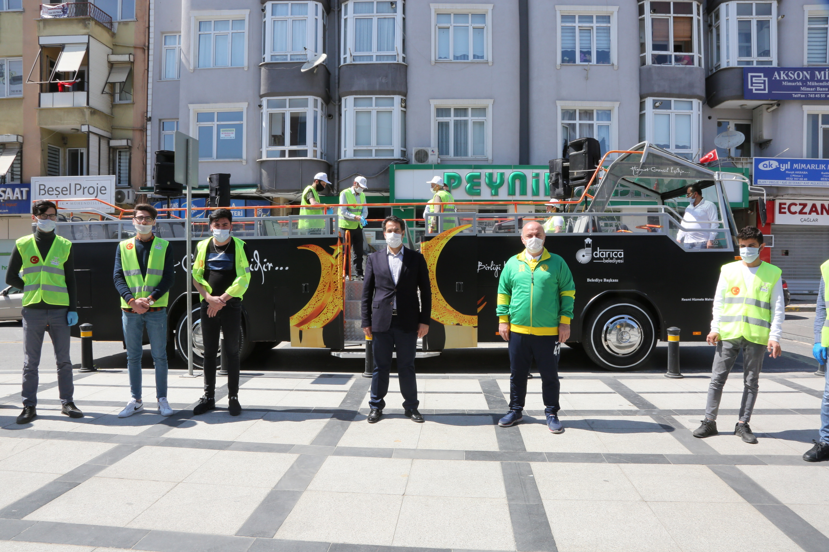 Darıca Belediyesi, koronavirüs tedbirleri kapsamında hafta sonu uygulanan sokağa çıkma yasağı nedeniyle evlerinde bulunan vatandaşlara destek vermek için üstü açık araçla moral konseri düzenledi. Darıca Belediyesi bünyesinde oluşturulan Vefa Sosyal Destek Grubu üyelerinden oluşan müzik grubu, üstü açık otobüs ile ilçe genelindeki cadde ve sokakları gezerek vatandaşlara konser verdi. Cadde ve sokaklarda gezen kimi zaman da apartmanların önünde durarak konser veren müzisyenlere vatandaşlar cam ve balkonlarına çıkarak eşlik etti. Müziğin sesi ile pencere ve balkonlarına çıkan vatandaşların kimi bayrak salladı kimi ise alkışlayarak göbek attı.