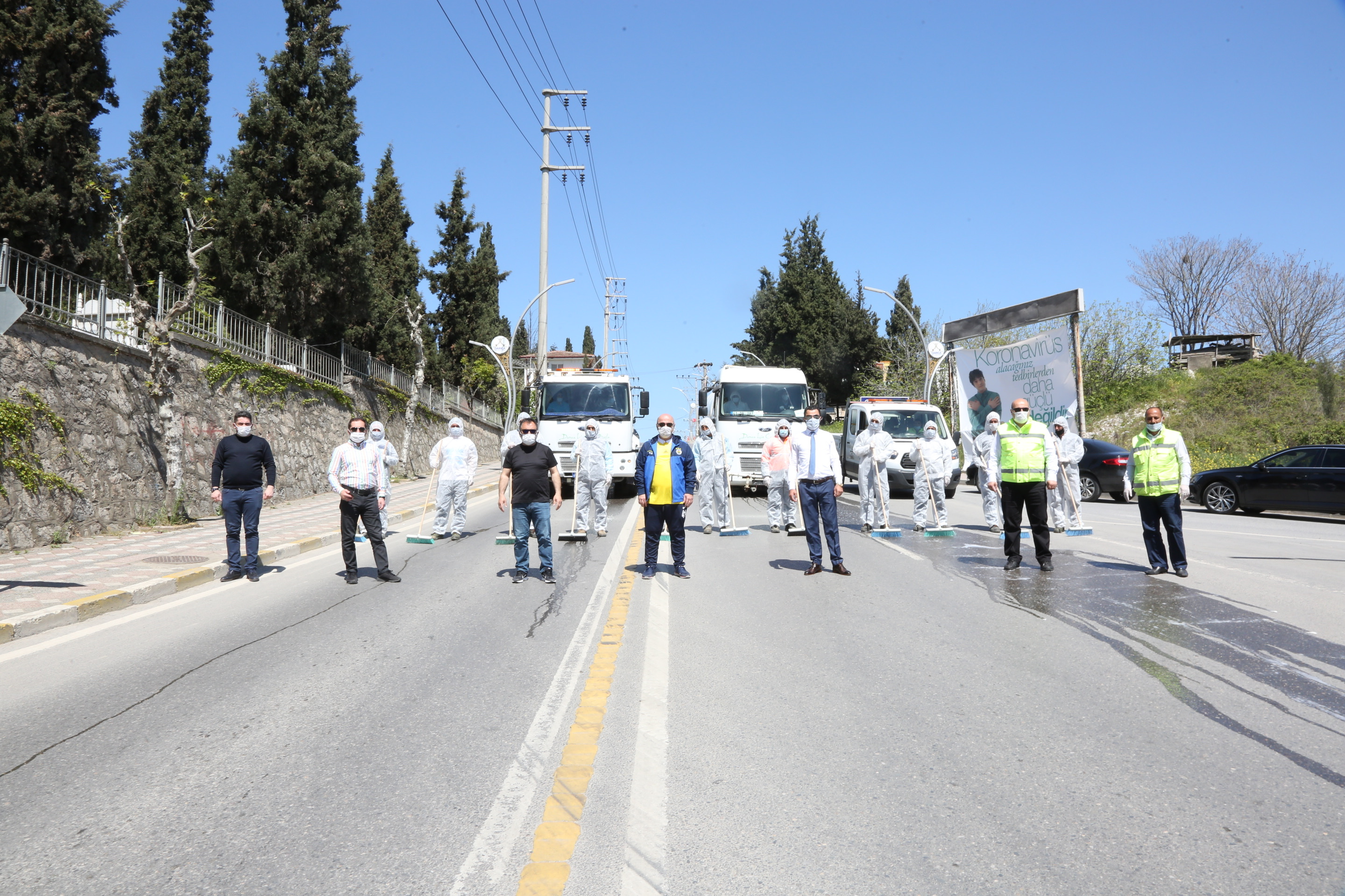 Darıca Belediye Başkanı Muzaffer Bıyık da yıkama çalışmalarını yerinde inceleyerek ekiplerden bilgi aldı. Darıca’da koronavirüs tedbirleri kapsamında bütün mahallelerde ana caddeler ve ara sokaklarda yıkama çalışmaları yaptıklarını ifade eden Başkan Muzaffer Bıyık, “Virüs salgınının ülkemizde görüldüğü ilk günden itibaren bizler de vatandaşlarımızın sağlığı ve huzuru için gerekli bütün tedbirleri aldık. Cumhurbaşkanlığı ve İçişleri Bakanlığımızın yayınladığı genelgeler ile Bilim Kurulu’nun tavsiye kararları doğrultusunda çalışmalarımızı sürdürüyoruz. Bu kapsamda ilçe genelinde dezenfekte çalışmaları yapıyoruz. Her mahallemizde düzenli olarak cadde ve sokaklarda yıkama çalışmalarımız devam ediyor. Sokağa çıkma yasağında da caddelerimiz boş kaldığı için dezenfektanlı suyla yıkama işlemi gerçekleştirdik. Bu çalışmalarımıza ara vermeden devam edeceğiz. Fedakarca çalışan ekiplerimize teşekkür ediyorum. Vatandaşlarımız evlerinde kalmaya devam etsin. Aldığımız tedbirler ile virüs salgınını hep birlikte atlatacağız” diye konuştu.