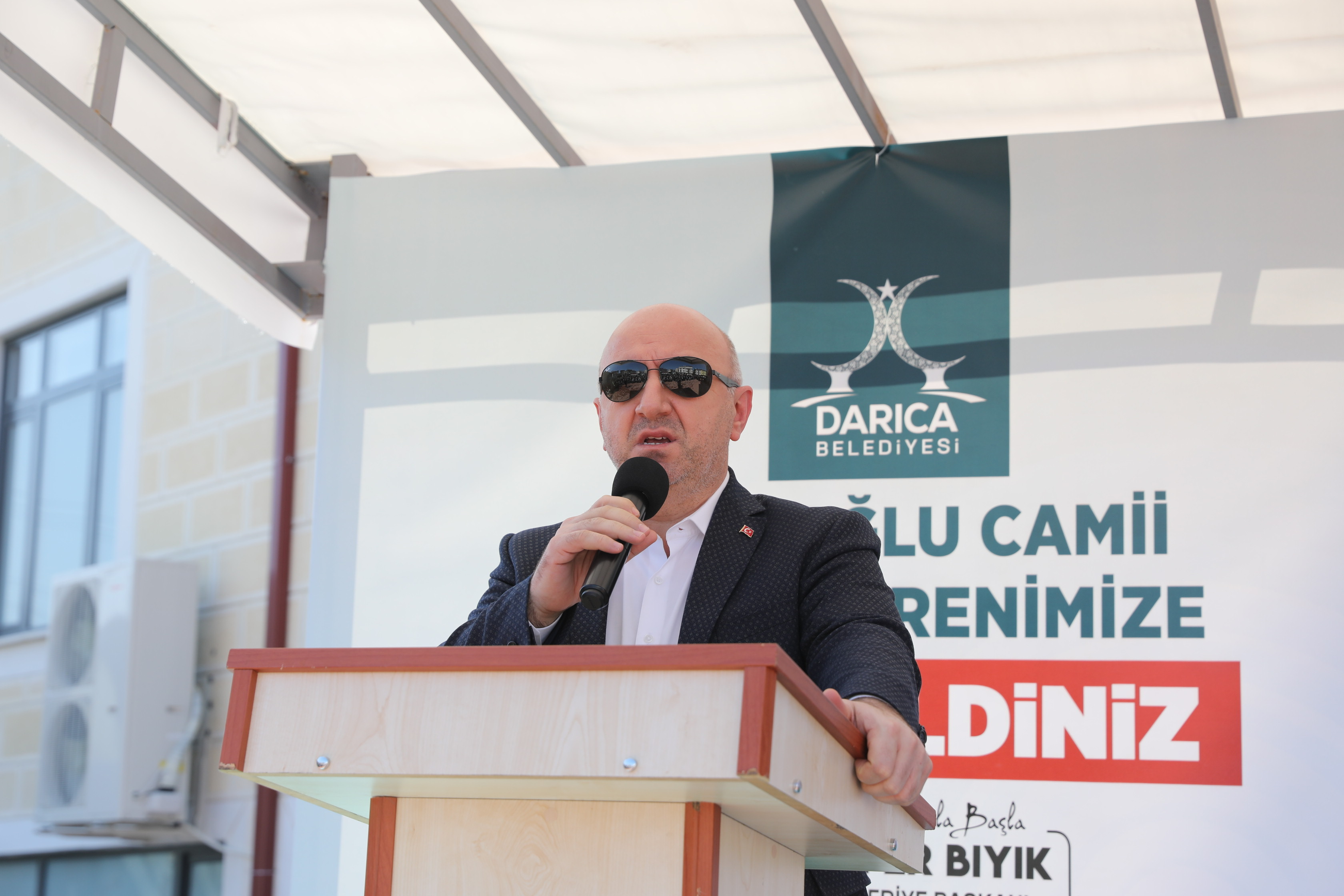 Darıca Belediye Başkanı Muzaffer Bıyık ise kısa sürede camiyi yeniden ibadete açtıkları için mutlu olduklarını ifade ederek “Burası sadece cami değil. Güzel bir kompleks inşa edildi. İlçemizin en büyük camisi olacak. Aynı zamanda kompleks, gençlik merkezi, konferans salonu bulunuyor. Herkese hitap edecek şekilde inşa edildi. İbadethanenin yanı sıra kadınlara, gençlere çocuklara da hitap edecek. Darıca’nın merkez camisi olacak. Darıca Belediyesi olarak caminin avlusunu da büyütecek bir çalışma yaptık. Rabbim hayırlı eylesin. Bir kez daha Eyüboğlu ailesi ve emeği geçenlere teşekkür ediyorum” diye konuştu.