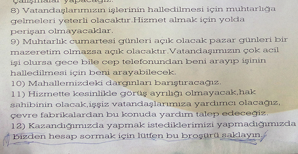 Kandaz son olarak ben muhtarlığa milletime nasıl daha güzel hizmet edebilirim düşüncesiyle yola çıktım. Şükürler olsun ki şu ana kadar olumsuz tepkilerden fazla tebrikler geldi.” Dedi