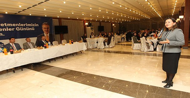 24 Kasım Öğretmenler Günü münasebetiyle düzenlenen yemeğe Gebze Belediye Başkan Yardımcıları Nilay Ayran, Sadık Albayrak, Engin Güzel, başkan danışmanı Şakir Bitmez, Bem-Bir-Sen Sendikası ve GESMEK eğitimcileri katıldı. Yemekte kısa bir selamlama konuşması yapan Gebze Belediye Başkan Yardımcısı Nilay Ayran, tüm öğretmenlerin 24 Kasım öğretmenler gününü kutladı. Şehir dışı programı nedeniyle yemeğe katılamayn Gebze Belediye Başkanı Adnan Köşker’in selamlarını ileterek konuşmasına devam eden Ayran, öğretmenlerin toplumların gelişmesinde, ilerlemesinde çok önemli bir yere sahip olduğunu vurguladı. Başkan yardımcısı Ayran, “Gelecek nesillerin mimarı siz değerli öğretmenlerimiz, bizler için çok değerlisiniz. Başöğretmenimiz Mustafa Kemal Atatürk başta olmak üzere tüm öğretmenlerimizin öğretmenler gününü kutluyorum” ifadelerini kullandı.