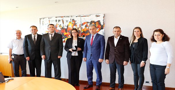 Heyeti, GOSB Yönetim Kurulu Başkanı Vahit Yıldırım ile Bölge Müdürü Z. Nil Sönmez karşıladı.