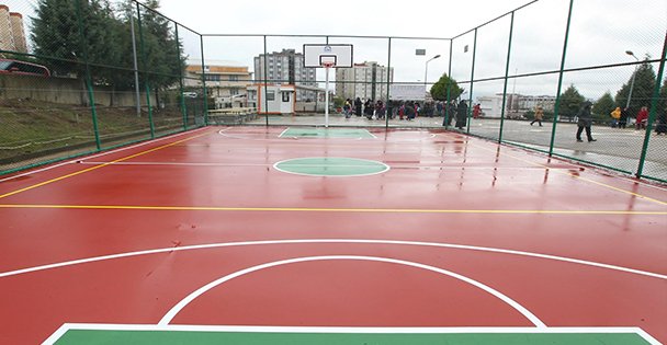 Belirlenen okulların bahçelerinden ilk olarak zemin asfaltı, akrilik boya işlemini tamamlayan park ve bahçeler müdürlüğü ekipleri spor ekipmanlarının kurulumunu sağladıktan sonra sahanın etrafını tel örgüyle güvenli hale getiriyor. Park ve bahçeler müdürlüğü yetkilileri, verilen talimat doğrultusunda okullara çok amaçlı spor alanlarının kazandırılmasına devam edeceğini bildirdi.