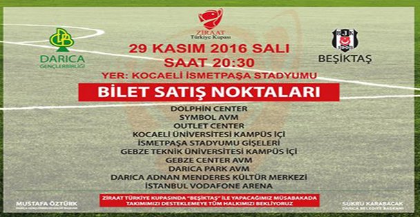 29 Kasım 2016 tarihinde oynanan ve Darıca tarihinin en üst düzey maçı olarak tarihe geçen Darıca G.B- Beşiktaş arsasında oynanan Ziraat Türkiye Kupası maçı öncesi, Gebze Belediyesi ve Gebze Center gibi iki önemli kurumun sarı-yeşillilerin bilet satmalarına engel olduğu öğrenildi. İzmit İsmetpaşa Stadı’nda oynanan böylesine önemli bir müsabaka öncesi Darıca G.B’nin bu şekilde bir ayrıma tabi tutulması tepkilere yol açarken, Gebze ve Darıca’nın kardeşlik söylemleri sadece lafta kalmış oldu.