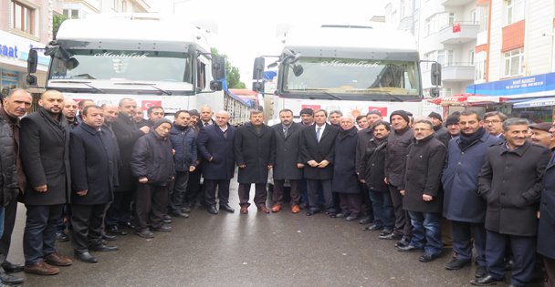 Tırlar, İlçe Müftüsü Muharrem Bilgiç'in yaptığı duanın ardından yola çıktı.