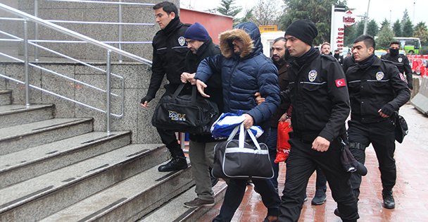 Sağlık kontrolünden geçirilen 6'sı kadın 18 şüpheli, güvenlik önlemleri altında Kocaeli Adliyesi'ne sevk edildi.