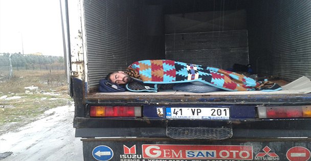 Kocaeli'nin Gebze ilçesinde nakliyecilik yapan bir sürücüsü, 8 kere çalınan aküsünü hırsızlardan korumak için kamyonunun kasasında yatıyor.
