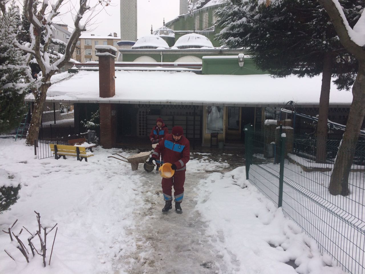 Gebze Belediyesi Temizlik İşleri Müdürlüğü’ne bağlı ekipler kar yağışı nedeniyle kentin cami avlularında, okul ve sağlık ocağı bahçelerinde biriken karları temizleme çalışması gerçekleştirdi.
