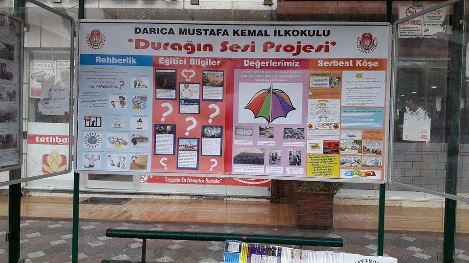 Durağın Sesi Projesi ile açıklama yapan Darıca Mustafa Kemal İlkokulu Müdürü, Suat Yapıcı, “Projede rehberlik bölümünden değerler eğitimine ilginç bilgilerden serbest köşeye kadar bir çok alan var. Aynı zamanda okulumuzdan haberler adlı ayrı bir panomuz da var. Bu proje ile halkımızın bilinçlenmesine katkı sunarsak ne mutlu bize. Bu projede desteğini esirgemeyen öğretmen arkadaşlarıma ve velilerimize çok teşekkür ederiz." dedi.