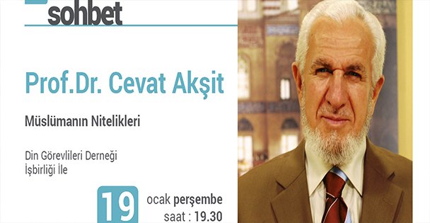 Gebze Belediyesinin düzenlediği kültür-sanat etkinlikleri kapsamında Prof. Dr. Cevat Akşit “Müslümanın Nitelikleri” konulu sohbetiyle Gebzeliler ile buluşacak.