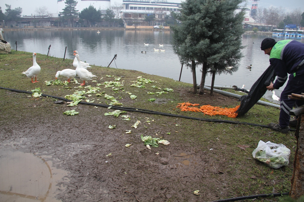 Ekipler, her mevsim kente renk katan fuar alanında bulunan kaz ve ördekleri, havuç, marul ve kuru yemle besledi.