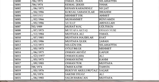 KHK’lar ile İhraç edilen devlet memurlarının listesi, İl Göç Uzman Yardımcısı Ömer Can Türkmenoğlu, Doktor Ercan Bilal Taner , Hemşire Hülya Duran , Sağlık Memuru Nurcan Keser , Hemşire Yenigül Ataş, Uzman Doktor Mehmet Hamdi Aytekin, Hemşire Mehmet Demir , Ebe Özlem Uluçak , Hemşire Yakup Akar, Sağlık Memuru Tülin Teker, Sağlık Memuru Emrah Gedikoğlu, Hemşire Manolya Medine Tülek Olgun, Sağlık Memuru Ümit Uygur.