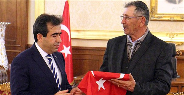 Konuşmanın ardından Halisdemir, Vali Güzeloğlu'na Türk bayrağı ve Kur'an-ı Kerim takdim etti.