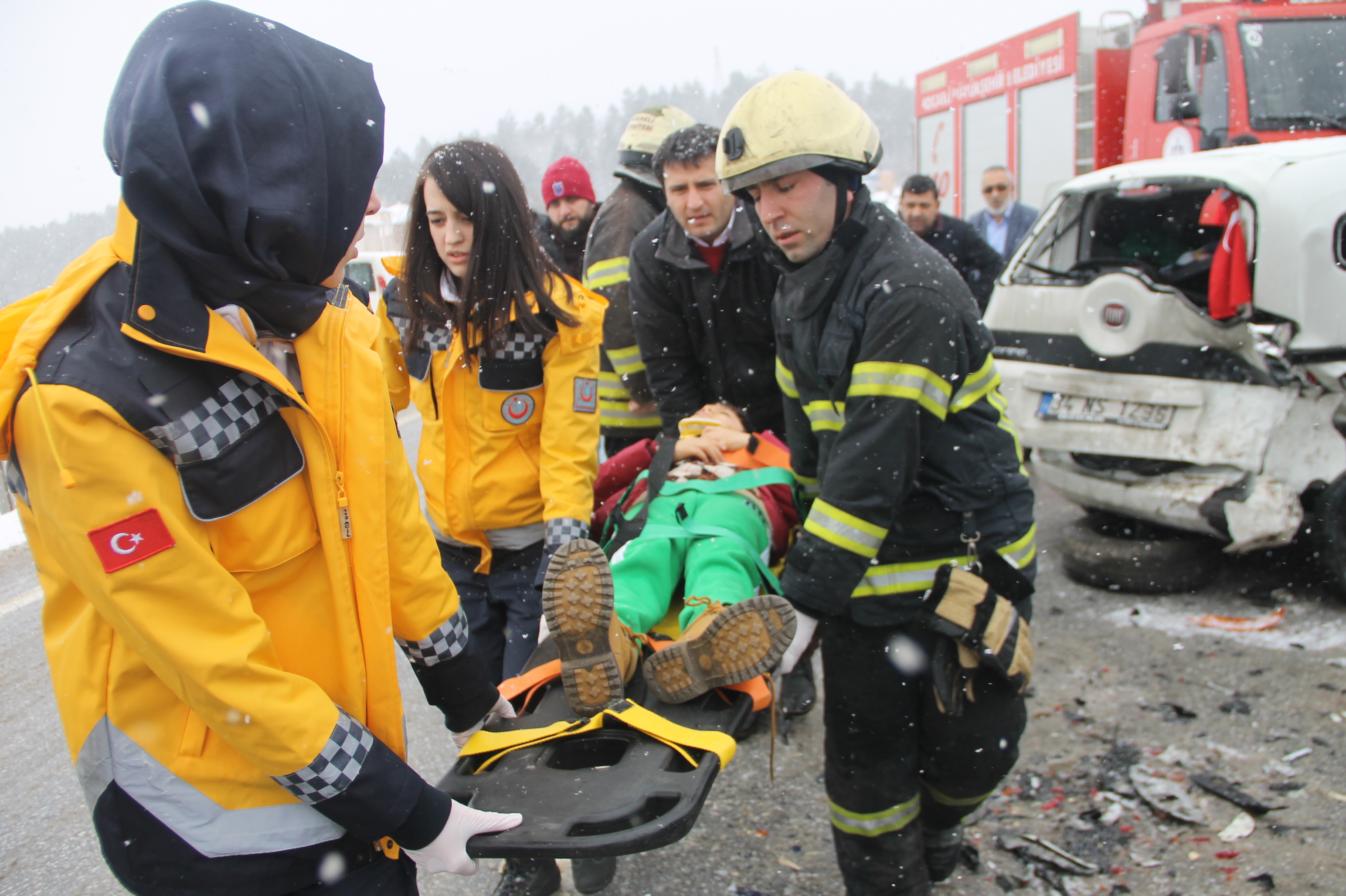 Kazada, araç içerisindeki sürücü Adem Tetik'in çocukları Miraç Tetik (5) ve Mehmet Tetik (9) ile eşi Ömür Tetik ve kayınvalidesi Sabahat Acar, diğer araç sürücüsü Rafet Şahin ve yanındaki Ferya Sahur yaralandı.
