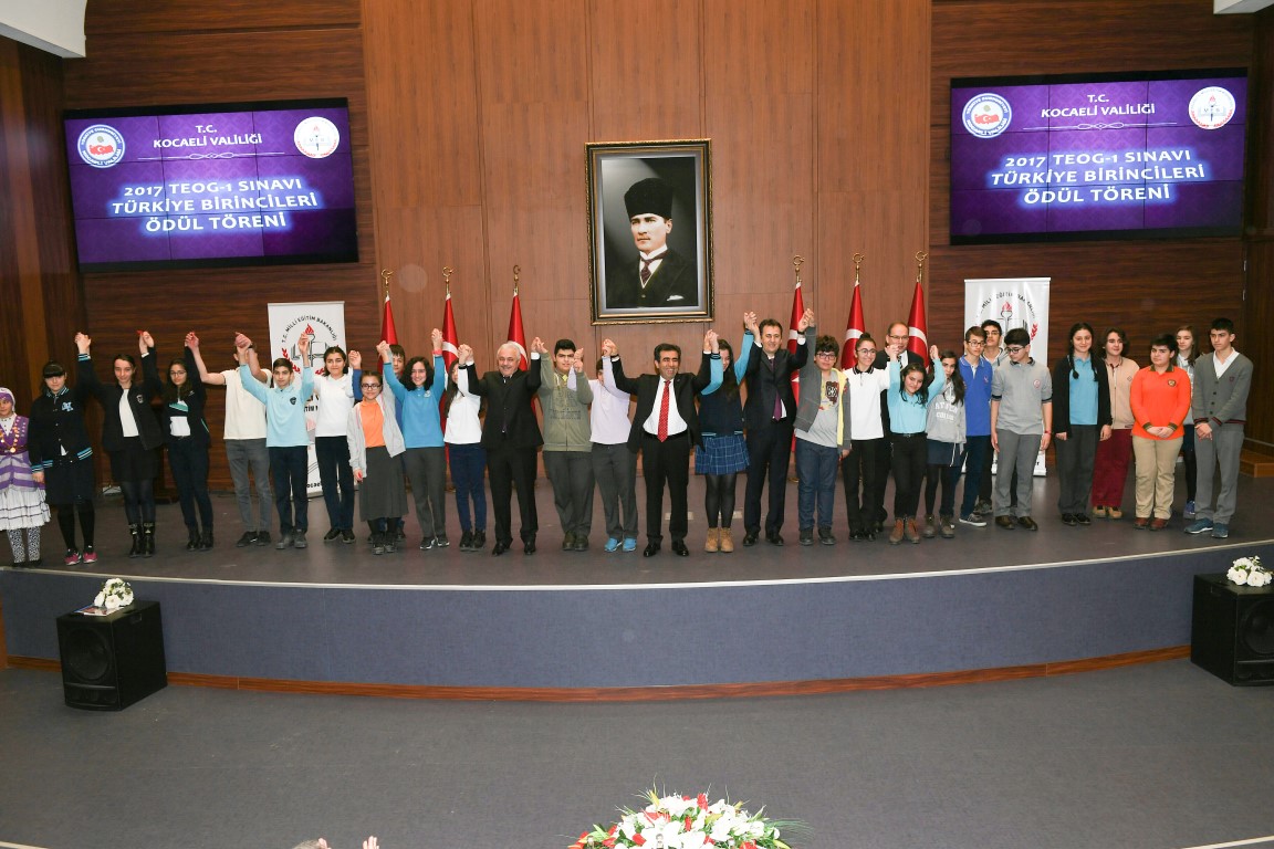 Akçakoca Toplantı Salonunda gerçekleştirilen ödül törenine; Valimiz Sayın Hasan Basri Güzeloğlu’nun yanı sıra Gebze Teknik Üniversitesi Rektörü Prof. Dr. Haluk Görgün, Vali Yardımcısı Ahmet Büyükçelik, Kocaeli Üniversitesi Rektör Yardımcısı Prof. Dr. Ercüment Çiftçi, İl Milli Eğitim Müdürü Fehmi Rasim Çelik, İlçe Milli eğitim Müdürleri, Okul Müdürleri, veliler ile Türkiye birincisi 25 öğrencimiz; Ahmet Hasan Okumuş, Aybike Derin, Ayşe Azra Artur, Batuhan Sarıdere, Cansu Sanbay, Defne Çiftçi, Emirhan Pektaş, Gökhan Gülçakır, Hasan Eren Çakır, İrem Dülek, İrem Pekru, Kerem Bayhan, Kübra Yıldız, Mehmet Gökay Durdu, Mustafa Öztürk, Pınar Balcı, Süeda Yavru, Tuana Ayşe Erol, Tunahan Yılmaz, Yağmur Oğuz, Yiğit Çamur, Yusuf Tamer Kanık, Zehra Nil Sarışık, Zeynep Demirel ve Zeynep Nur Okuş katıldılar.