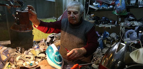 Sakarya'da elektrikli ev eşyalarını tamir eden 90 yaşındaki Ahmet Orhan Güranlıoğlu, vazgeçemediği mesleğini azimle sürdürüyor.