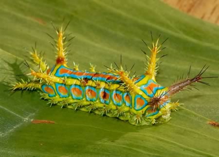 Wattle Cup Tırtıl: Kuzey Avustralya’nın çeşitli bölgelerinde görülen bu ilginç tırtılın üç arının sokmasından daha fazla acı veren güçlü bir sokma acısı var. Görüntüsü ve renkleriyle muhteşem bir tırtıl.