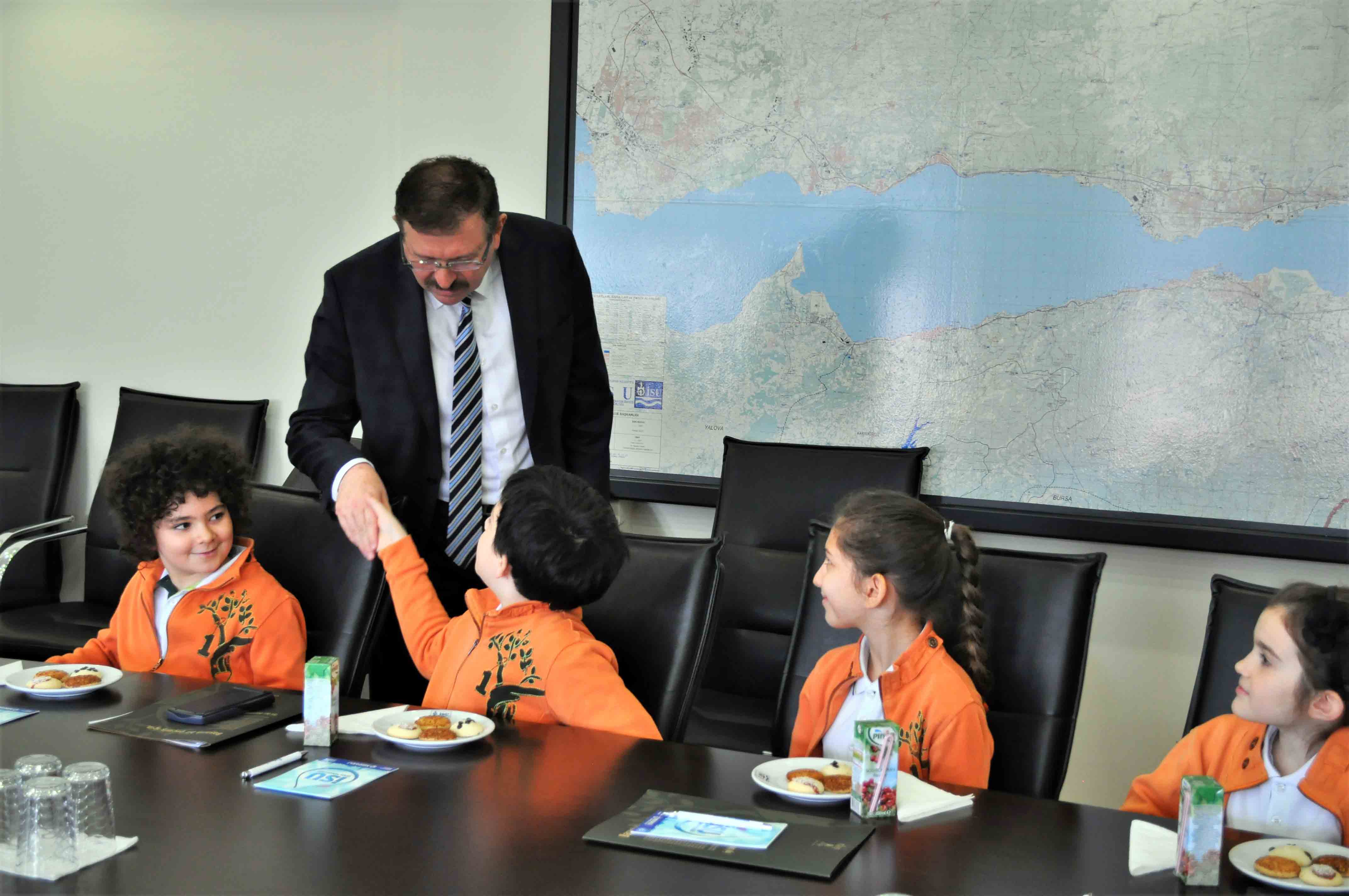 Doğa Kolejinin 4.sınıflarında eğitim gören öğrenciler rehber öğretmenleri Selen Yapar ile birlikte İSU Genel Müdürlüğü’nü ziyaret etti. Öğrencileri ağırlayan Genel Müdür İlhan Bayram, öğrenciler ile tek tek tokalaşarak yakından ilgilendi. Kurum olarak yaptıkları yatırımlar hakkında bilgi veren Genel Müdür Bayram, yaptıkları yatırım ve teknolojik uygulamalarla Kocaeli’nin yaşam kalitesini artırdıklarını söyledi. Kocaeli’nde 750 bini aşkın aboneye ülkemizin en sağlıklı içme sularından birisini sağladıklarını ifade eden İSU Genel Müdürü, çevrenin korunması için de 22 adet arıtma tesisi işlettiklerini kaydetti. Su ve çevrenin korunmasında öğrencilere önemli görevler düştüğünü dile getiren Genel Müdür İlhan Bayram, “Su ve çevre bizim için çok önemlidir. Bunları korumak için de 13 yıldır 1.5 milyar lira üzerinde yatırım yaptık. Yaptığımız yatırımlar ile Kocaeli’nin yaşam kalitesi arttı. Bu kaliteyi korumak ve devamlılığını sağlamak için kurumların yanı sıra özellikle çocuklarımıza, öğrencilerimize büyük görevler düşüyor. Anne-babalar olarak nasıl çocuklarımıza gözbebeğimiz gibi bakıyorsak su ve çevrenin korunmasına da gözbebeğimiz gibi bakmamız gerekir. ”dedi.