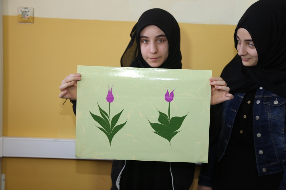 Lise öğrencileri ‘’ebru’’ sanatını çok sevdi