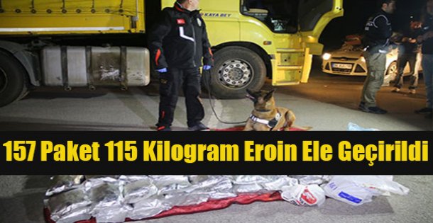 Burada yapılan aramalarda TIR’ın farklı bölümlerine gizlenmiş, 157 paket halinde 115 kilogram eroin ele geçirildi. Eroinin İran’dan alınarak Türkiye üzerinden Avrupa’ya götürülmek istenildiği iddia edildi. Yapılan kontrollerde TIR sürücüsü M.S.I. polis ekipleri tarafından gözaltına alındı.