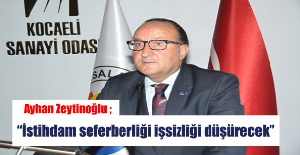 Kocaeli Sanayi Odası Başkanı Ayhan Zeytinoğlu, TUİK tarafından açıklanan ve yüzde 10,9’a çıkan 2016 yılı işsizlik rakamını değerlendirerek “İşsizlik yılsonu itibariyle yükselişte görünse de Hükümetimizin 2017 yılı şubat ayından itibaren uygulamaya koyduğu istihdam seferberliği kısa sürede sonuç verecek, işsizlik düşecek.” dedi.